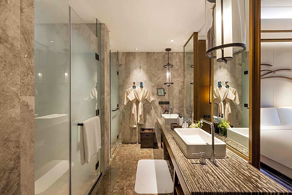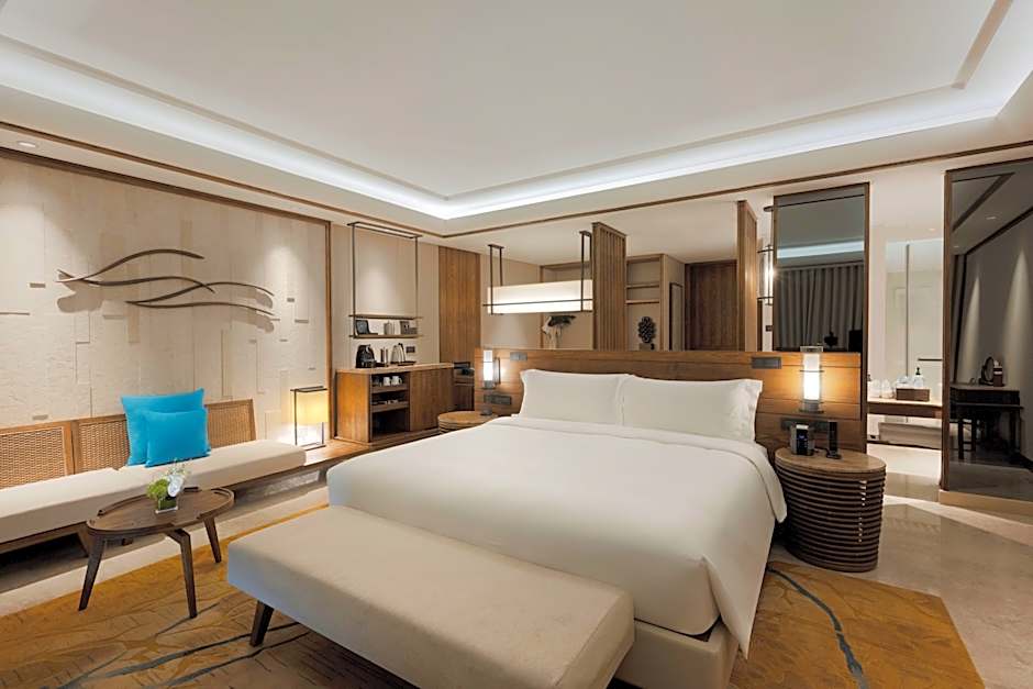 Spacious 118 sqm ocean view suite with a sofa lounge walk-in closet, multimedia telephone and Dyson hair dryer. Enjoy exclusive club lounge access with breakfast, afternoon tea and cocktail. Rest in the luxury bed with premium linen. Your large bathroom has branded toiletries shower. Room rate includes the benefits that guests can enjoy during the stay: